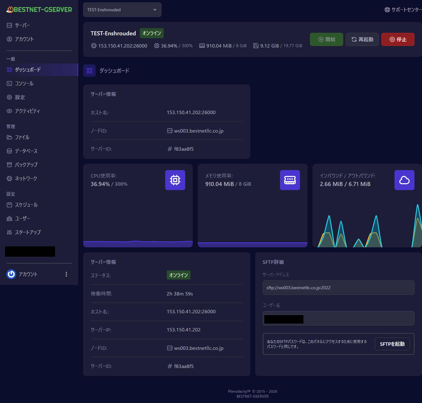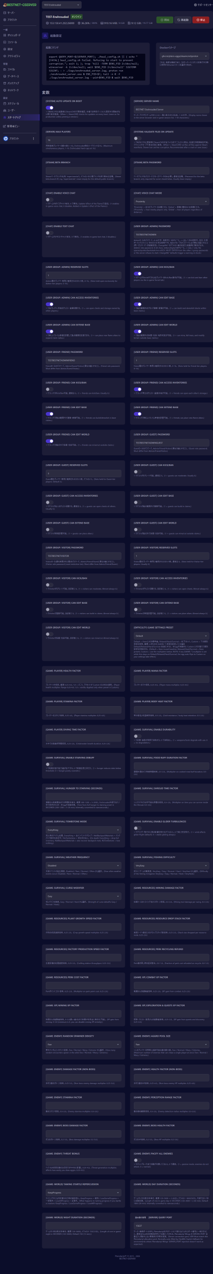 BESTNET-GSERVER の Enshrouded サーバーは、ゲームパネルのVariables(変数)機能から、サーバーの全設定を日本語GUIで変更できます。本ページでは、設定可能な全 77 項目について、その効果・推奨値・注意点をまとめています。