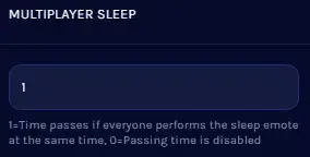 HumanitZサーバーのマルチプレイヤースリープ設定はベッドで休んでいるときのゲーム内時間経過を有効/無効をコントロールします。