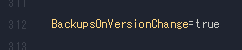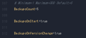 - 9.バージョンの更新によって既存の保存が壊れる可能性があるため、有効にし勧めします。 BackupsOnVersionChange=