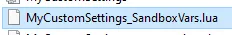 - 19.編集 用に開きます [Save/Config Name]_SandboxVars.lua。