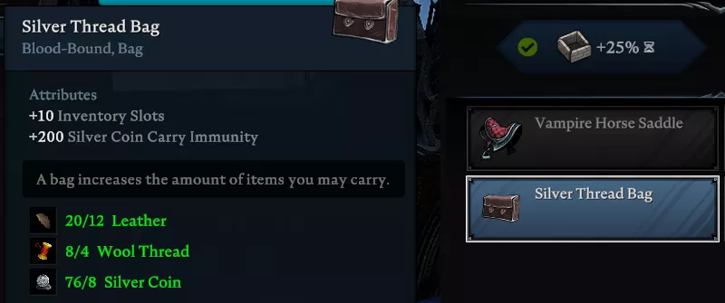 銀貨がインベントリにある間も同様にデバフが生じますが、プレイヤーに銀の保護を提供する装備を使用すると欠点なしに銀を保有できます。