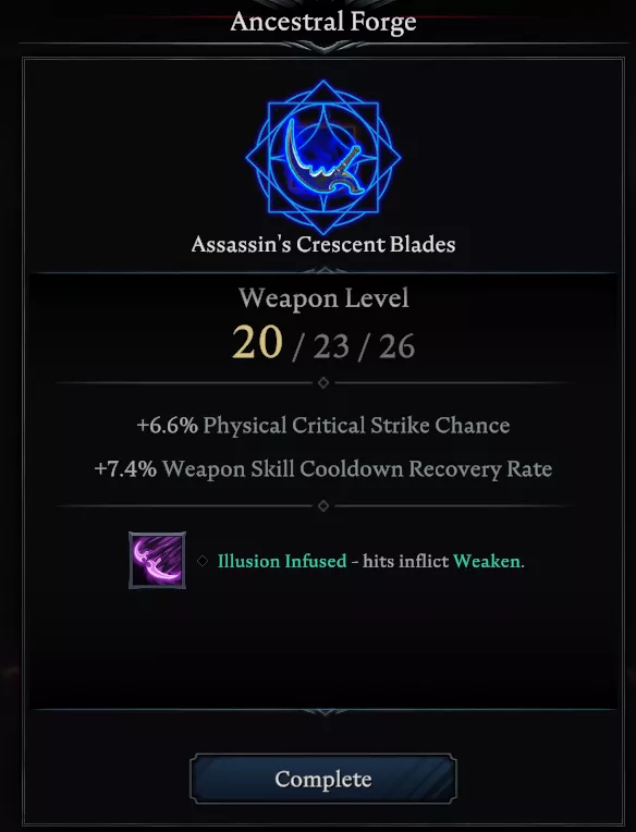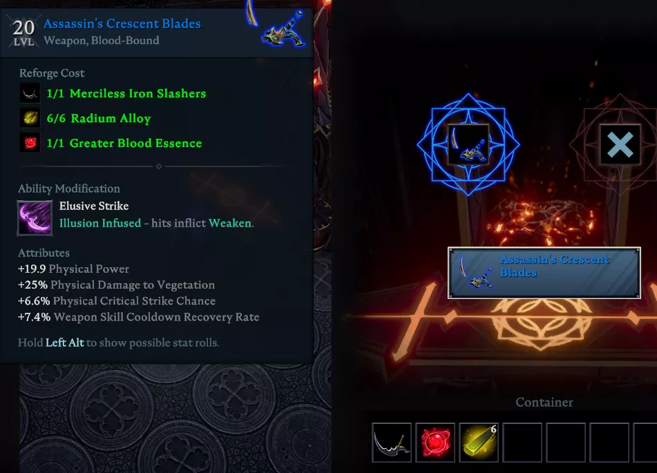 - 7 . 再鍛造された武器は、 Ancestral Forgeに戻すことでアップグレードできます。