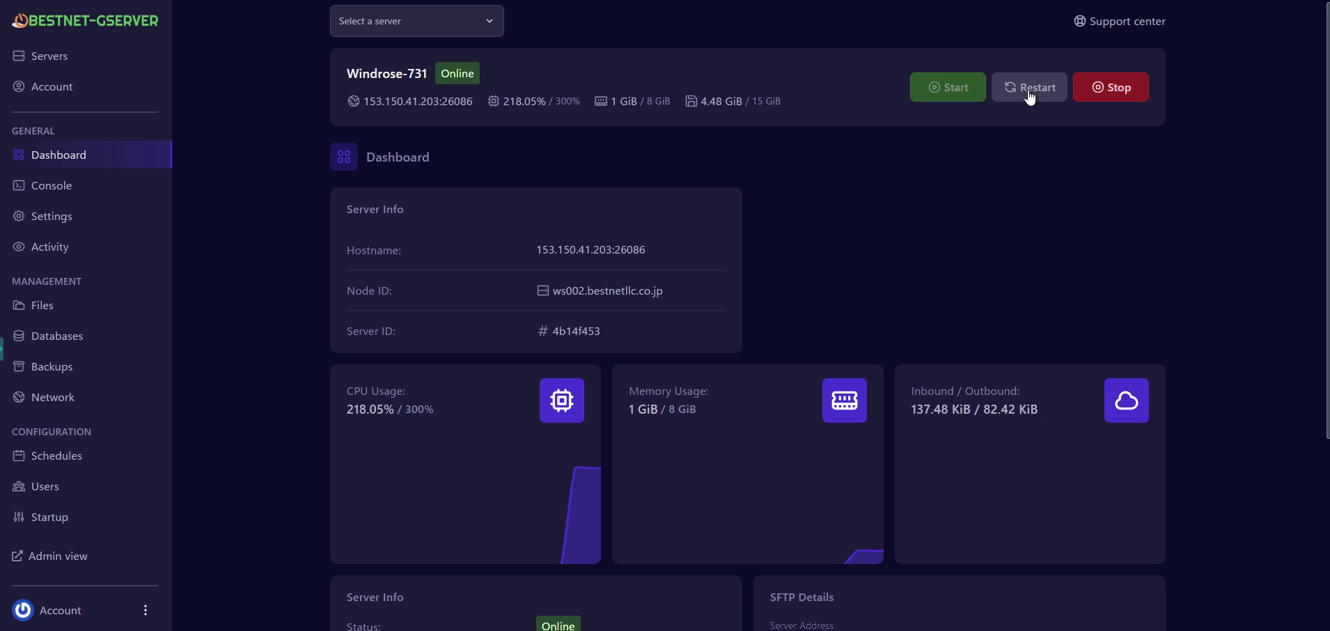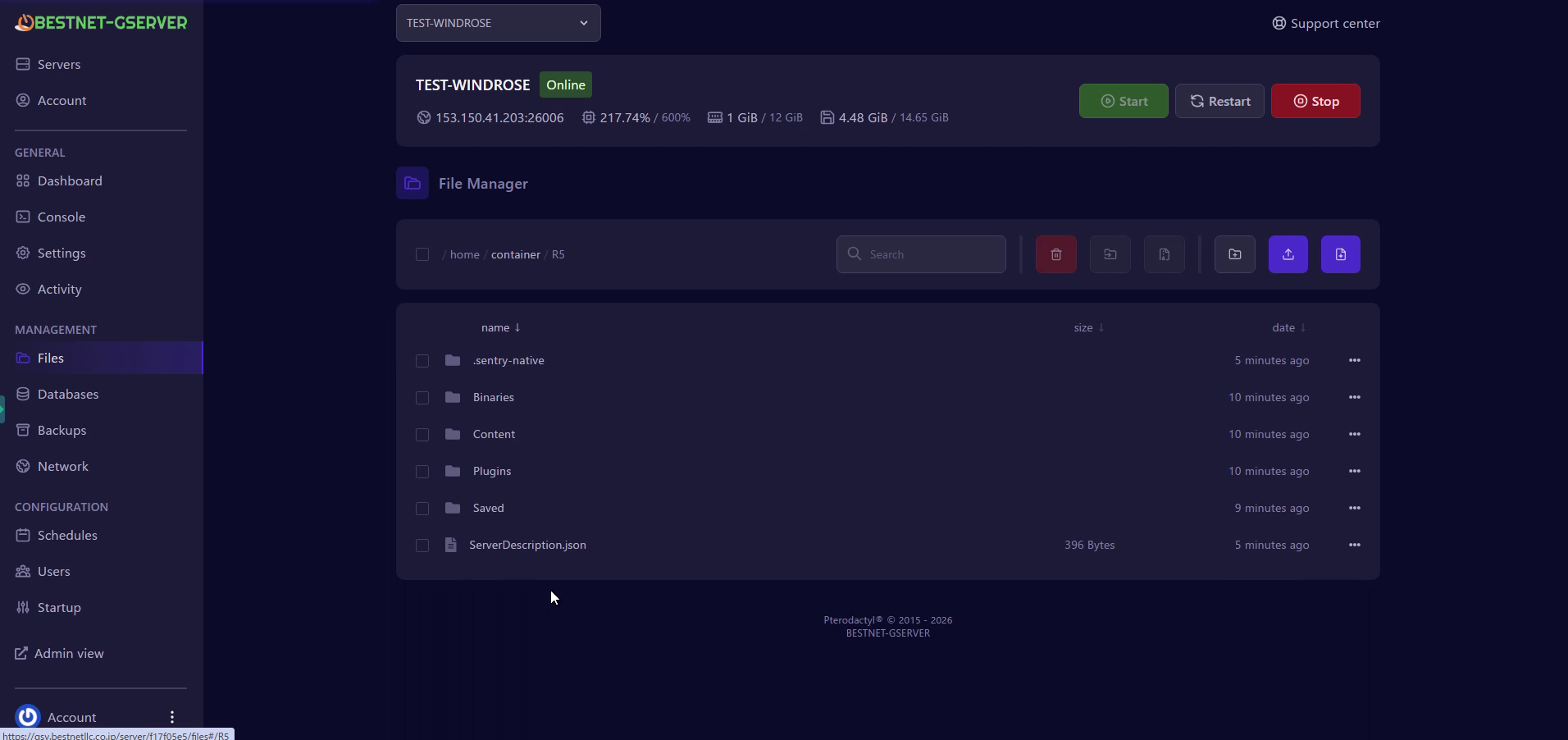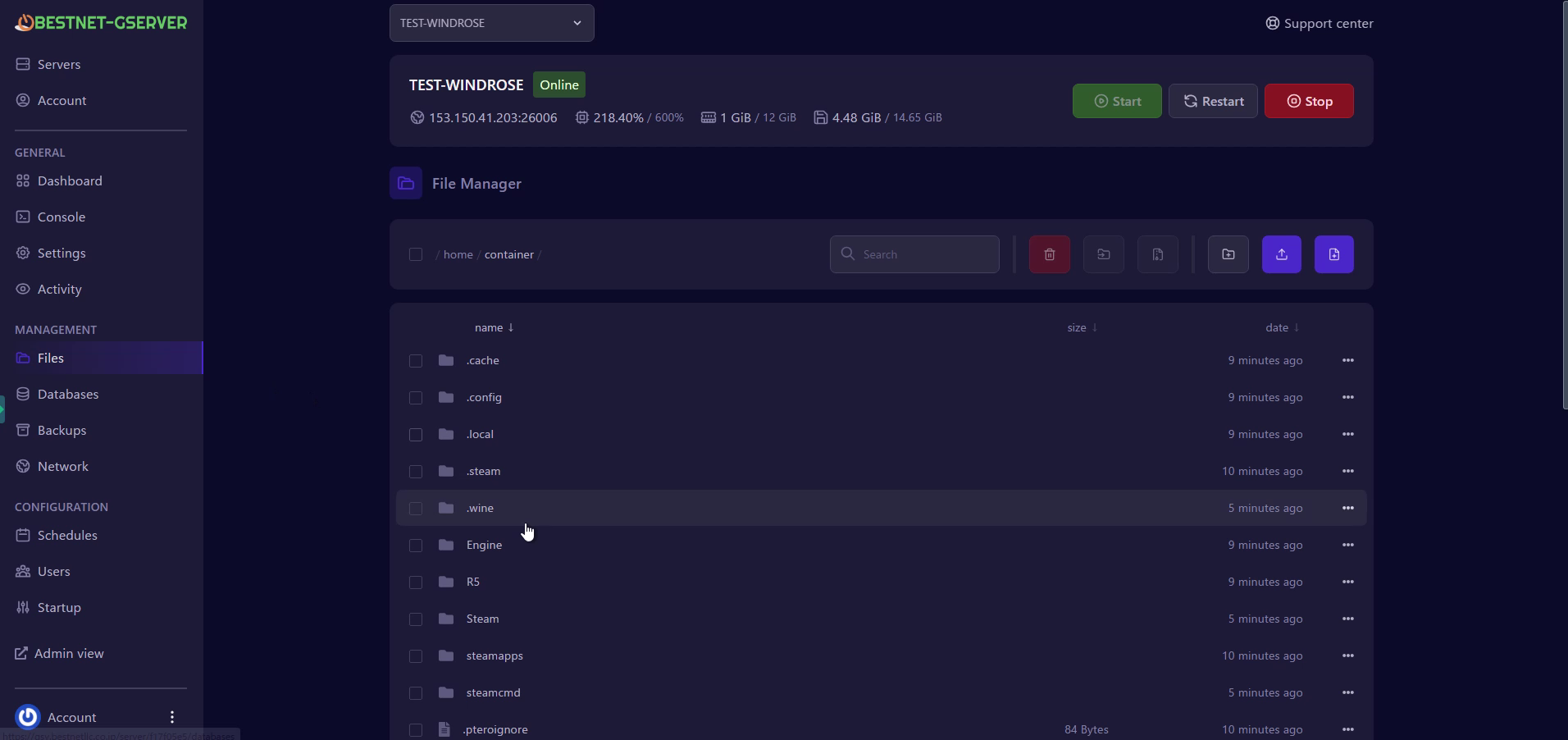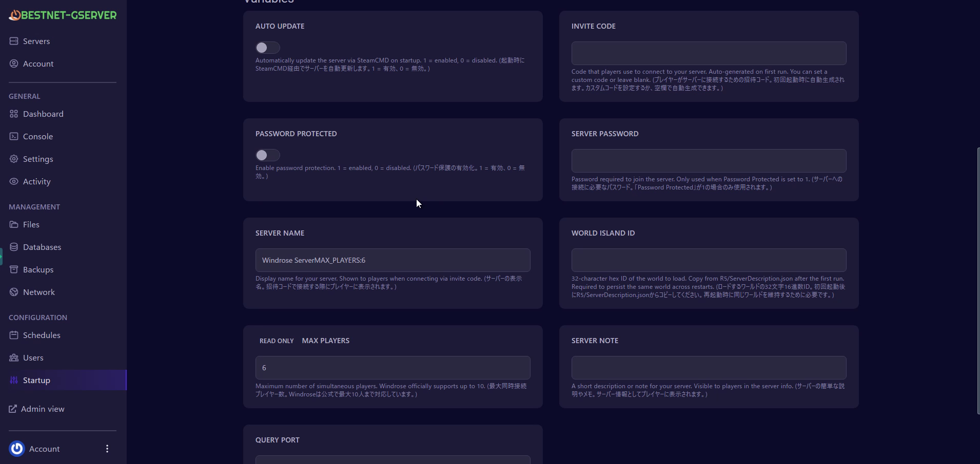 本ガイドはBESTNET-GSERVERのゲームパネルを使用したWindrose専用サーバーの初回セットアップ手順です。