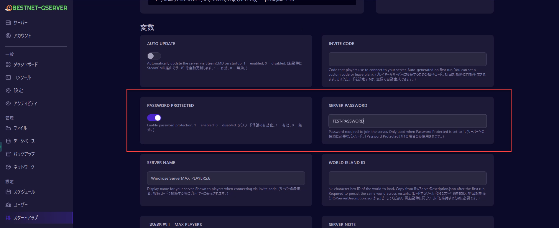 Windrose サーバーパスワード設定ガイド — BESTNET-GSERVER